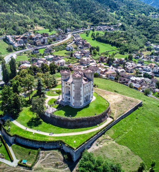Châtillon, which in ancient times was one of the most important villages in the region, evidenced by the presence of numerous castles and towers. The most well-known, Castello Gamba, was built in a panoramic position on the rocky spur of Crêt-de-Breil, overlooking the Dora Baltea. The castle was created as a love tribute from Baron Gamba to his beloved wife Angélique Passerin d’Entrèves, who was originally from Châtillon.